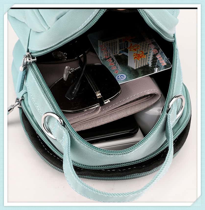 Detail craftsmanship ensures quality, the stitching of the bag body is neat and fine, the stitches are even, ensuring the stability of the bag structure. The edges are treated with edging to prevent fabric wear and thread loss, enhancing the overall delicacy. The metal accessories are made of high-quality alloy materials, which have undergone rust prevention treatment and have a soft color. They are coordinated with the nylon fabric material of the package, ensuring both functionality and overall aesthetics. There are small zippered pockets and open pockets inside, which can be used for sorting and storing small items such as keys, cards, etc., making it easy to access.