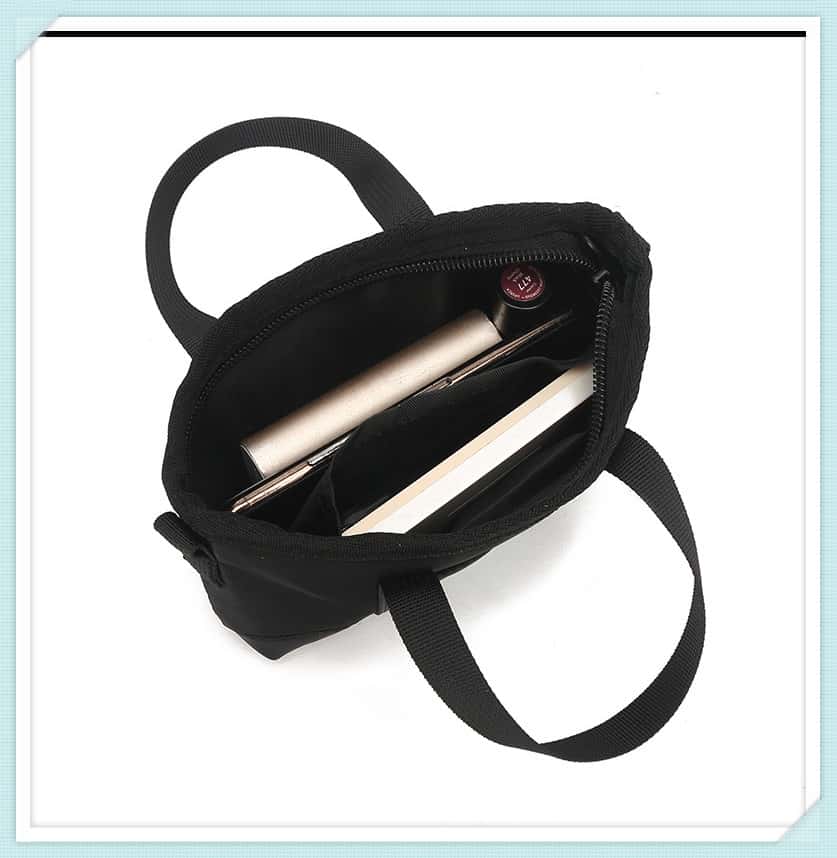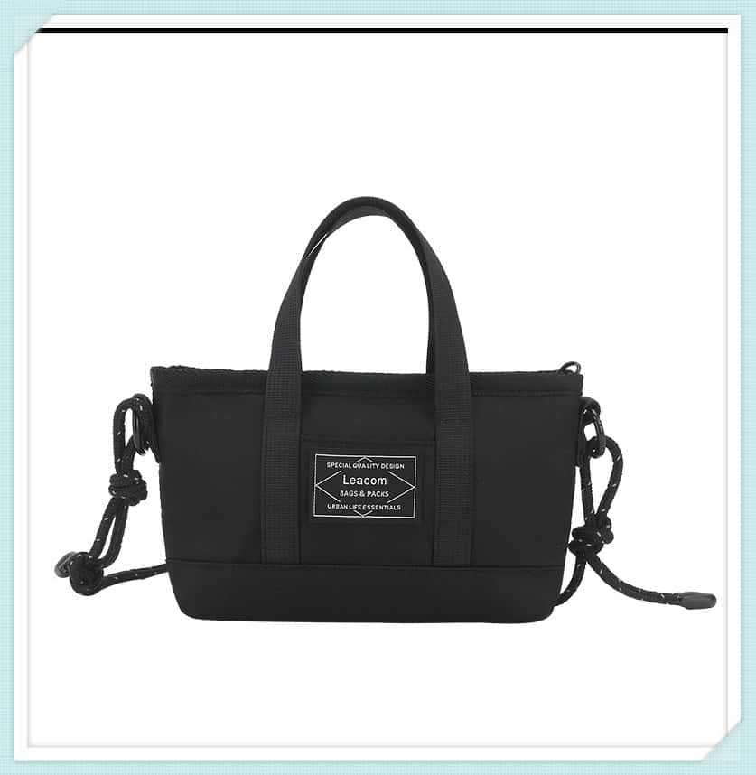 A top handle expands the bag’s use cases. The handle is about 15cm long and matches the bag material. Reinforced metal connectors ensure durability and a comfortable grip. It’s perfect for short carries, and it works as a stylish accent in any streetwear outfit.