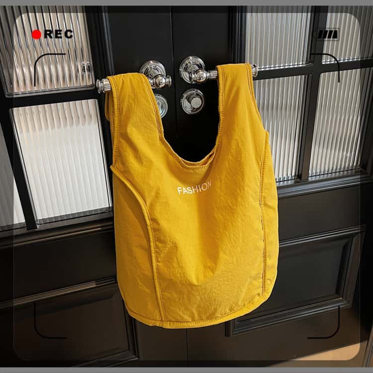 Featuring a sleek solid color and the “FASHION” logo, its minimalist look effortlessly elevates any outfit, whether you’re in jeans and a tee or dressed for a casual day out. The lightweight canvas material folds down to fit in your car trunk or closet, ready to spring into action whenever you need it. But don’t let its lightness fool you—built to withstand daily wear and endless folding, this bag promises long-lasting durability.